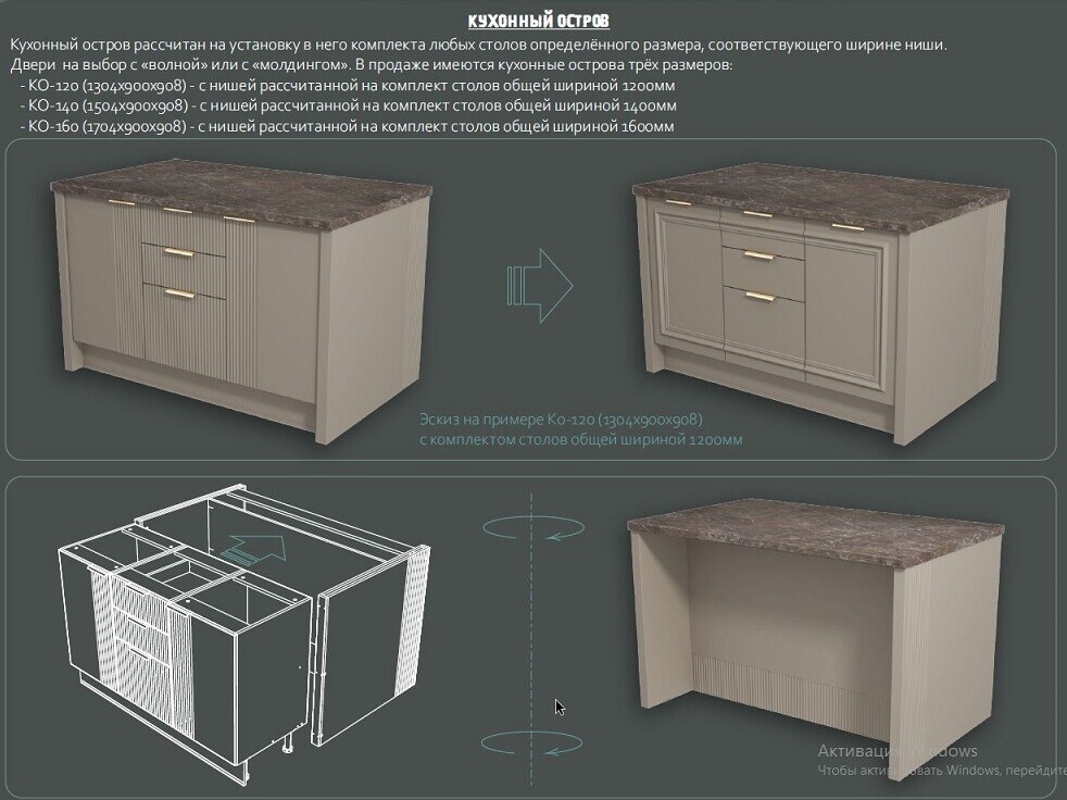КО-120 Кухонный остров, Фьюжн (1304*868*870) Мокко, 27105